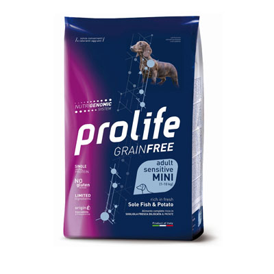 Prolife Grain Free Adult Sensitive Mini è un alimento completo per il cane adulto sensibile di taglia piccola.